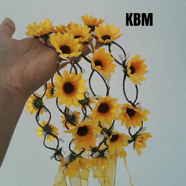 Jual Flower Crown Mahkota Bunga Sunflower Full Mix Aksesoris