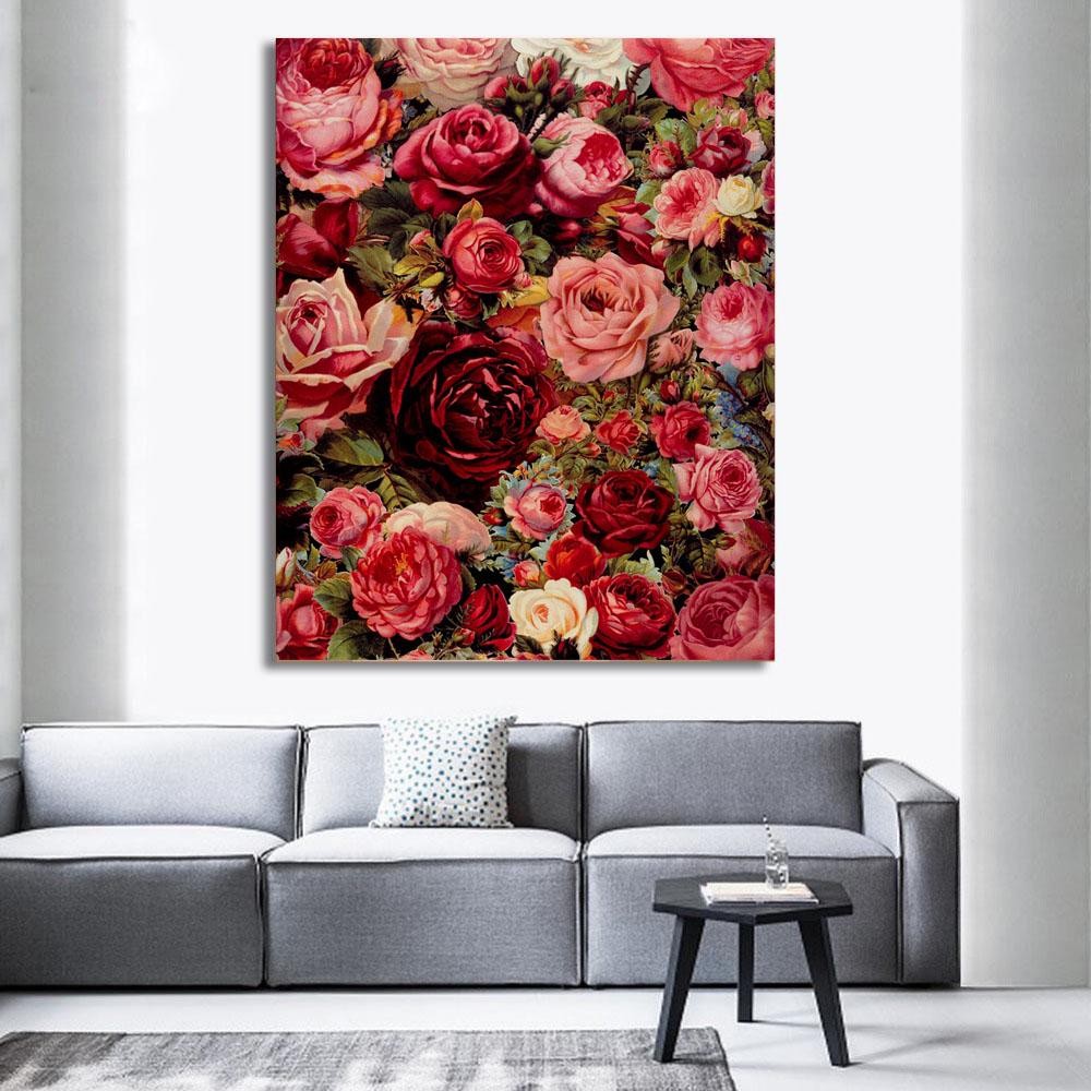 Red Rose Flower Oil Painting By Numbers On Canvas Home Decor