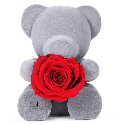 Louis Garden Handmade Preserved Fresh Rose Flower Teddy Bear With