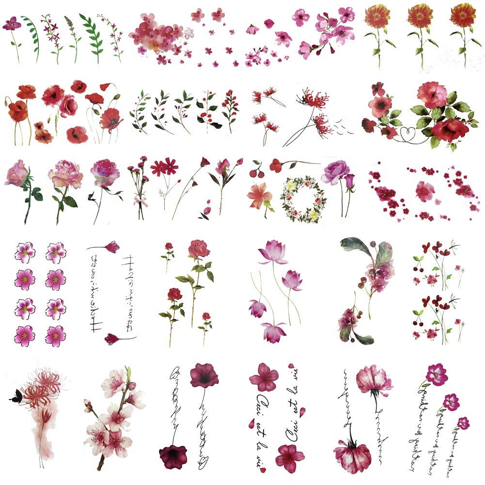 Amazon Com Everjoy Red And Pink Flower Temporary Tattoos 24