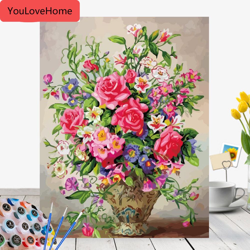 Rose Flower Diy Oil Painting By Numbers On Canvas Shopee Philippines