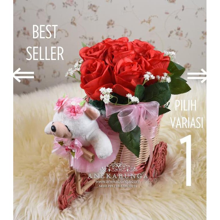 Bunga Mawar Plastik Kereta Teddy Bear Fresh Rose Flower Birthday