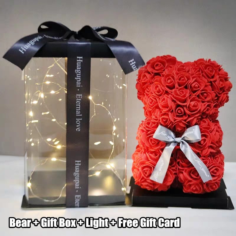 25cm Artificial Rose Flower Teddy Bear Gift Box Light Free Gift