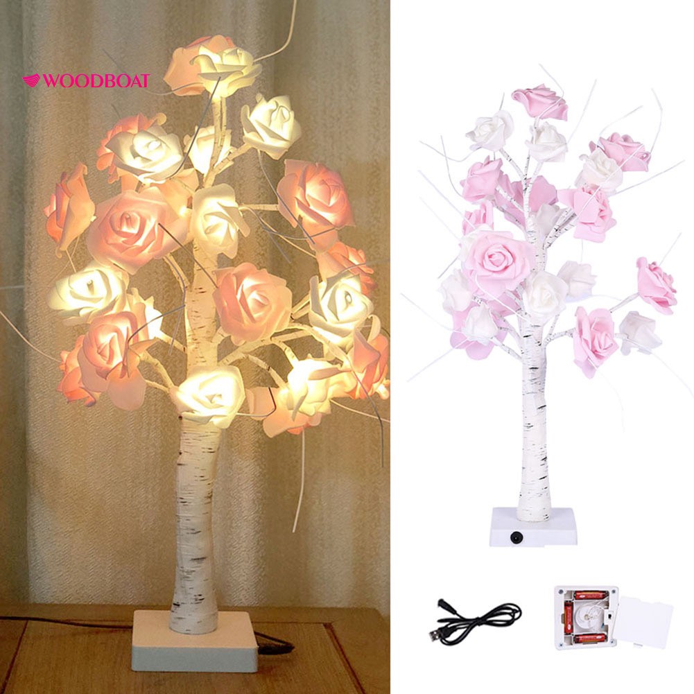 Woodboatm1 Romantic Rose Flower Tree Led Night Light Bedroom Desk