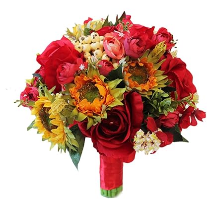 Amazon Com Angel Isabella Wedding Bouquet Summer Sunflower Rose