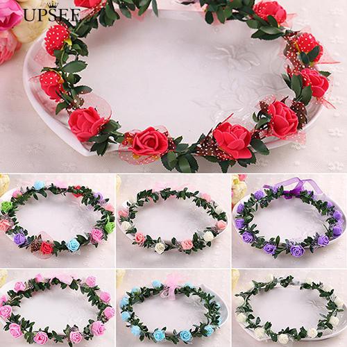 Fashion Bohemia Bride Rose Flower Wreath Headbands Women Girl